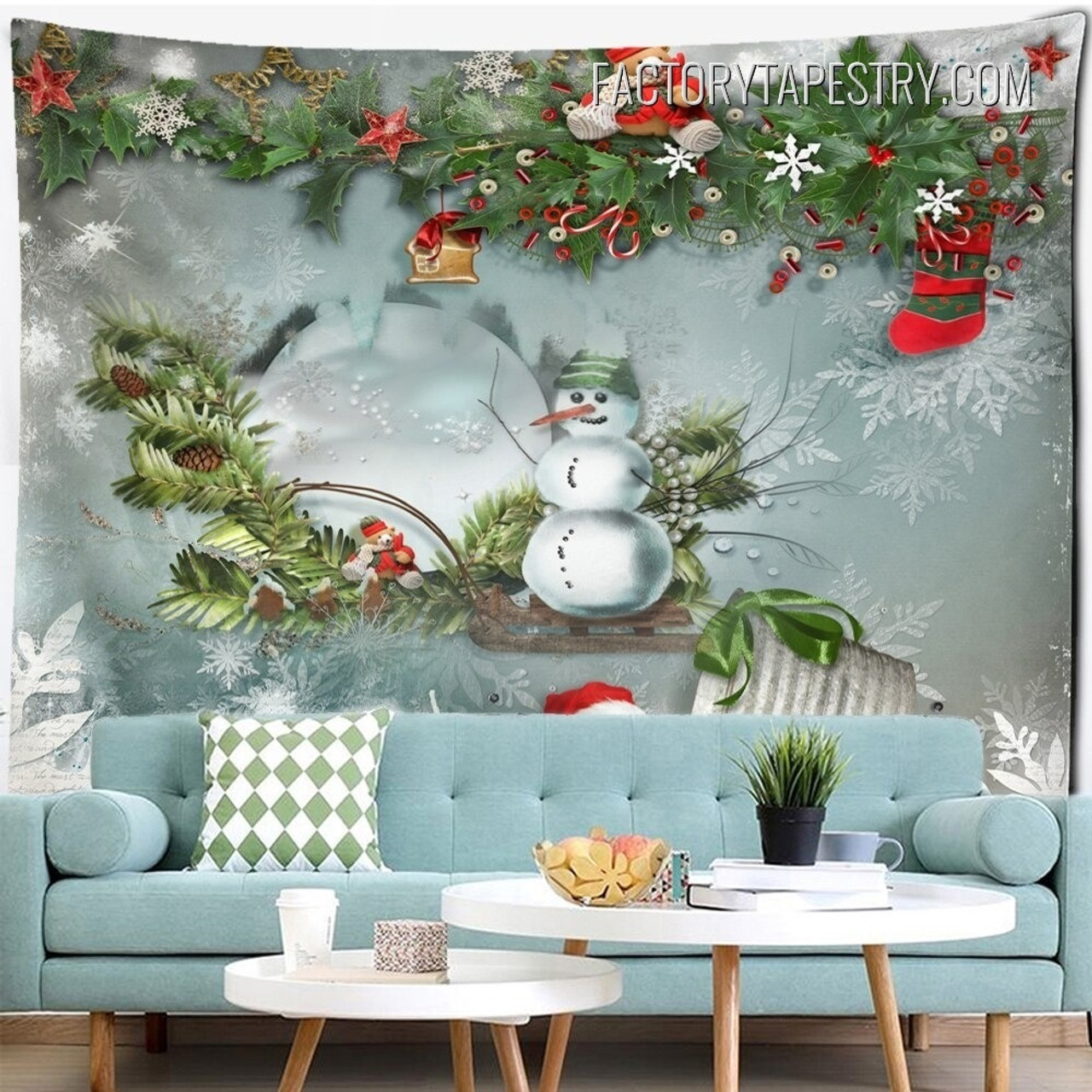 Get into the holiday spirit with this elegant tapestry featuring a delightful winter scene! It combines a joyful snowman, Santa hat, teddy bears, candies, and glittering snowflakes. This modern wall hanging instantly transforms any room into a festive haven, making it the perfect piece of tapestry wall art for your Christmas décor.